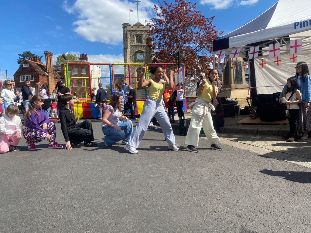 On Sunday 19th April our Street dance and modern groups performed for the St George's Day event in Pinner. Having done our school show a couple of weeks ago on a big stage, the students did a great job adapting their routines to the streets of Pinner! They looked fantastic!